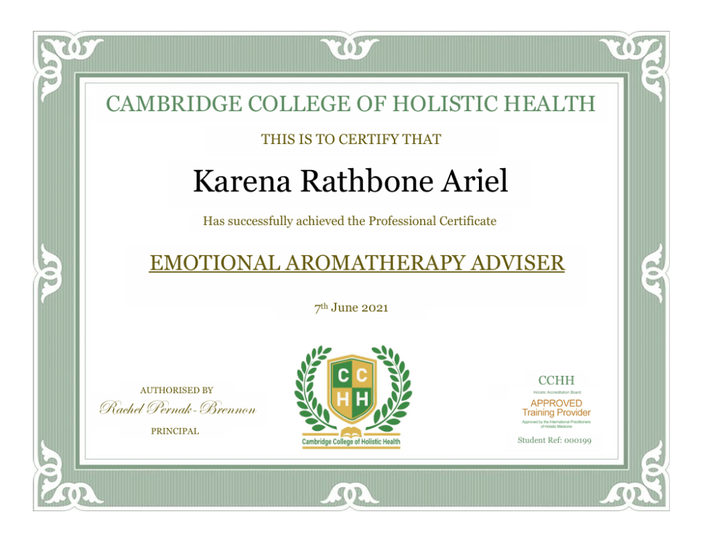 Affiliate link for the internationally accredited Emotional Aromatherapy Advisor course by Rachel Pernak-Brennan. I completed this back in June 2021 and continue to use this successfully today with my clients: https://www.cchh.co.uk/?ref=karena