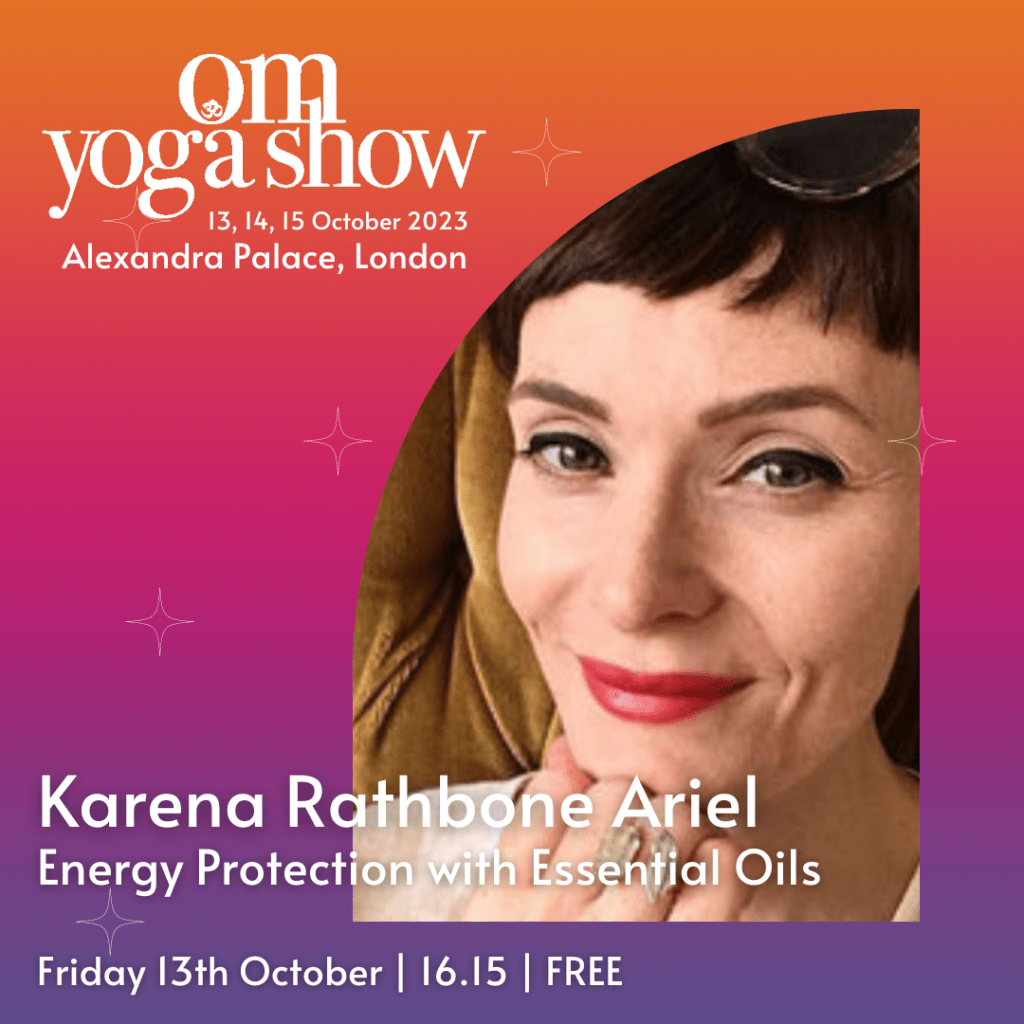 Stand K1. Aromatherapy for Energy Alignment class Friday 14th Oct 4:15pm-4:45pm in the Hero Open Class space, Om Yoga Show, Alexandra Palace London.